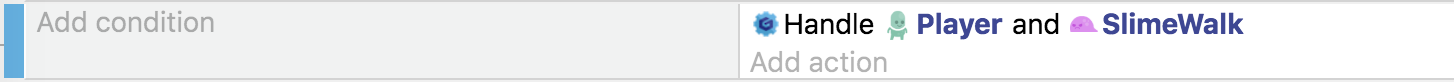 In the scene, add an action for Player (or the object you added the behavior to). Then choose "Handle enemies", our new action: